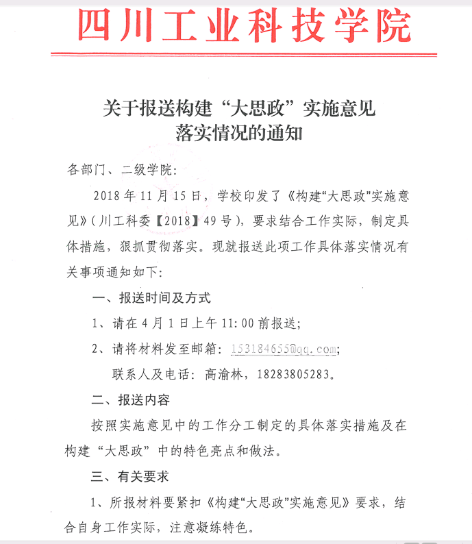 关于报送构建“大思政”实施意见落实情况的通知