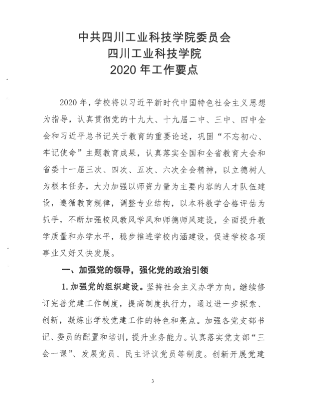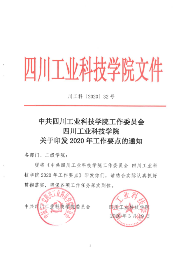 中共四川科技学院工作委员会、四川工业科技学院关于印发2020年工作要点的通知