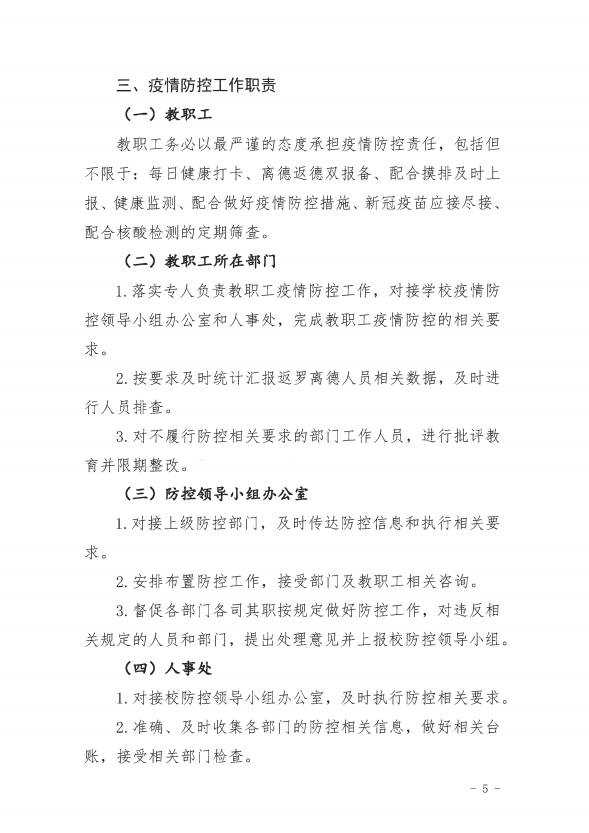 教职工疫情防控管理规定