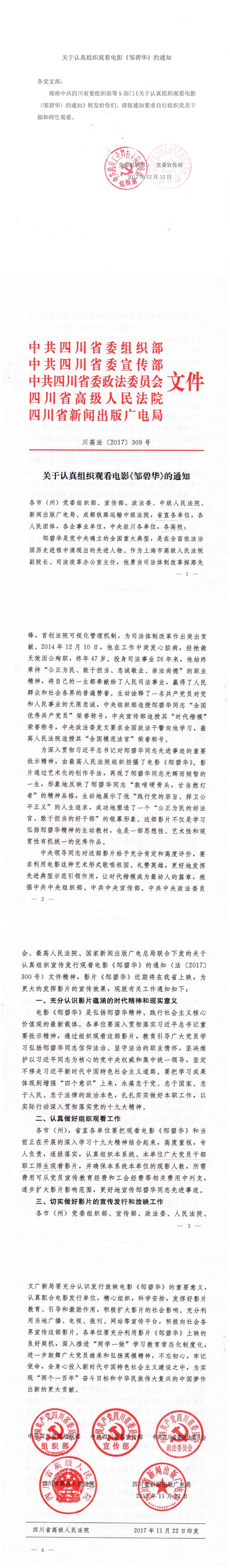 关于认真组织观看电影《邹碧华》的通知