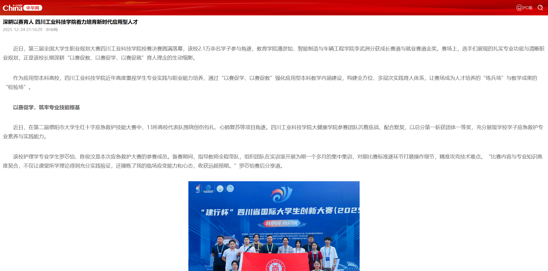 【中华网】深耕以赛育人  四川工业科技学院着力培育新时代应用型人才