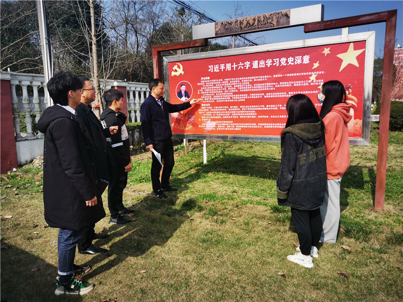 会后,党员及入党积极分子在“党史学习宣传专题”橱窗前,围绕习近平总书记提出的十六字, 热烈讨论了学习党史深远意义。