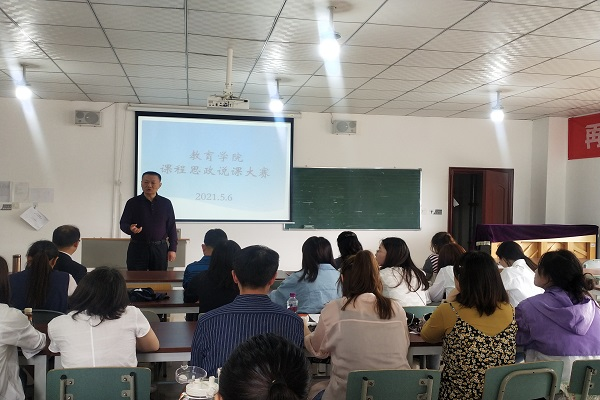 为提高学院教师课程思政教学水平,促进课程思政教学工作的顺利开展,教育学院5月6日在学前实训中心组织教研室主任开展了一次课程思政说课展示活动,活动由学院院长吴节义主持,党总支书记熊定永、副院长孙红英及学院全体教师参加了本次活动。
