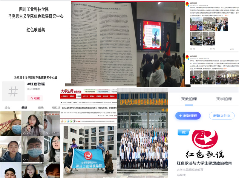 来到马克思主义学院工作后,冯军成保持谦虚谨慎的工作作风,积极向王文明、蔡林等有经验的专家请教,带动青年教师陈春蕾、曹芬、陈云芳、杨诚熙老师做好红色歌谣研究中心工作。在本次开展的“转作风、强素质、提能力、抓落实”的活动中,在冯军成老师带领研究中心成员申报了1项德阳市社科联项目(已立项),申报德阳市社科联研究重点研究基地红色歌谣研究中心(已获批),撰写了《近百年来红色歌谣的研究述评》《运用红色歌谣加强高校思想政治工作的实践与探索》《红色歌谣资源在民办高校党建工作中的应用》等文章,带领中心成员拍摄《十送红军》微视频,发起“红色歌谣进大中小学活动”活动先后由十一所高校参与此次活动,组织拍摄了19部红色短视频,抖音平台浏览量达4万余次,编写了八万字的《红色歌谣集》,参加了川陕博物馆的讲红色故事活动,讲述了张思德与《为人民服务》的故事。冯军成老师希望用自己的行为去影响他人,带动他人。