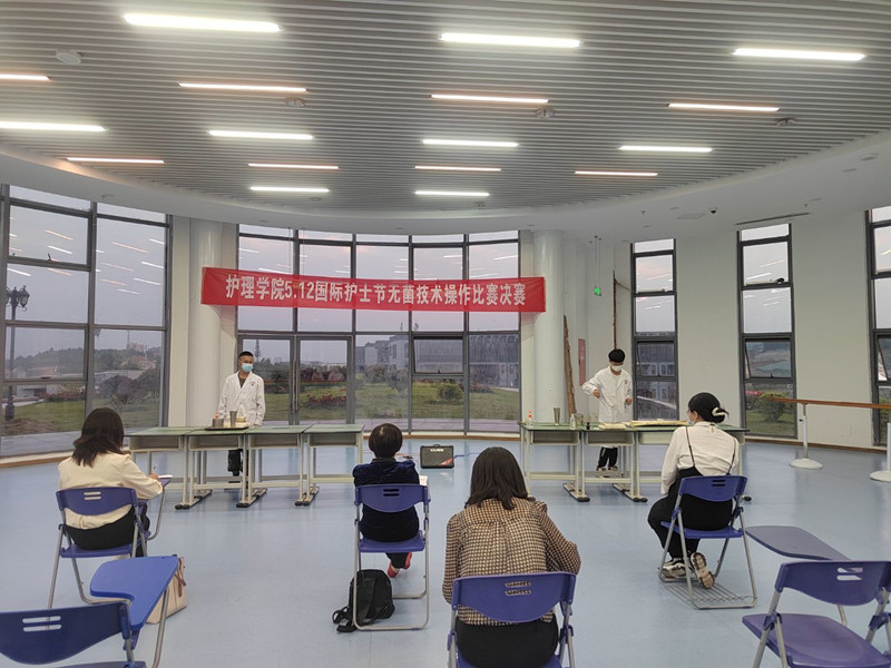 为使同学们更好的掌握基础护理操作,巩固基础护理学的理论知识和操作技术,营造良好的教学氛围,5月5日晚,护理学院在图书馆圆形教室进行无菌技术操作比赛决赛。经过初赛选拔,雍大毛、艾鑫蕾、赵培煊等16名学生进入决赛。护理学院党总支副书记李双晶、副院长刘琼碧、学工办主任李丹莅临比赛现场观看本次大赛,顾茜、谢宛宴老师担任本次比赛评委。