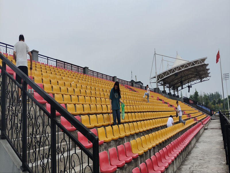 活动开始后,学员们便开始忙碌起来,在小组长的带领下对既定责任区域开展清洁工作,对草丛、跑道、座位区的垃圾进行人工捡拾,对篮球架等运动设备进行擦拭,以确保操场的各个角落都清理无遗漏。