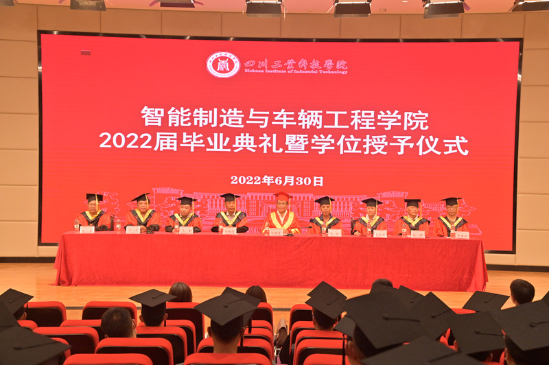 斗转星移,光阴似箭,四年弹指一挥间,又逢正冠拨穗日。6月30日,智能制造与车辆工程学院2022届学生毕业典礼暨学士学位授予仪式在龑江学区C区报告厅举行。学校副校长郭桂萍,学院行政领导,学院学位评定委员会委员,教师代表,毕业班辅导员,毕业生代表参加了典礼。典礼由教学办主任陈松主持。