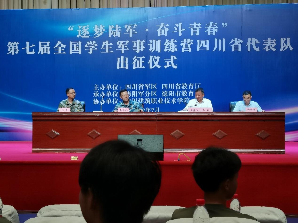 7月21日上午,第七届全国学生军事训练营四川省代表队出征仪式在四川建筑职业技术学院隆重举行。德阳市委常委、德阳军分区司令员赵创业、战备建设处处长杨勇、德阳市教育局局长屈直出席活动。