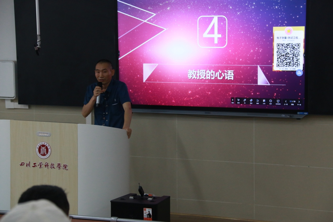 最后,由刘光乾教授进行宣讲,刘教授结合自己的心得体会,介绍了如何去选择适合自己的工作岗位,以及电子测量/测试工程师的就业和发展前景,让同学们抓住学校提供的这个非常好的机会,教授们的讲解十分精彩、简洁明了。