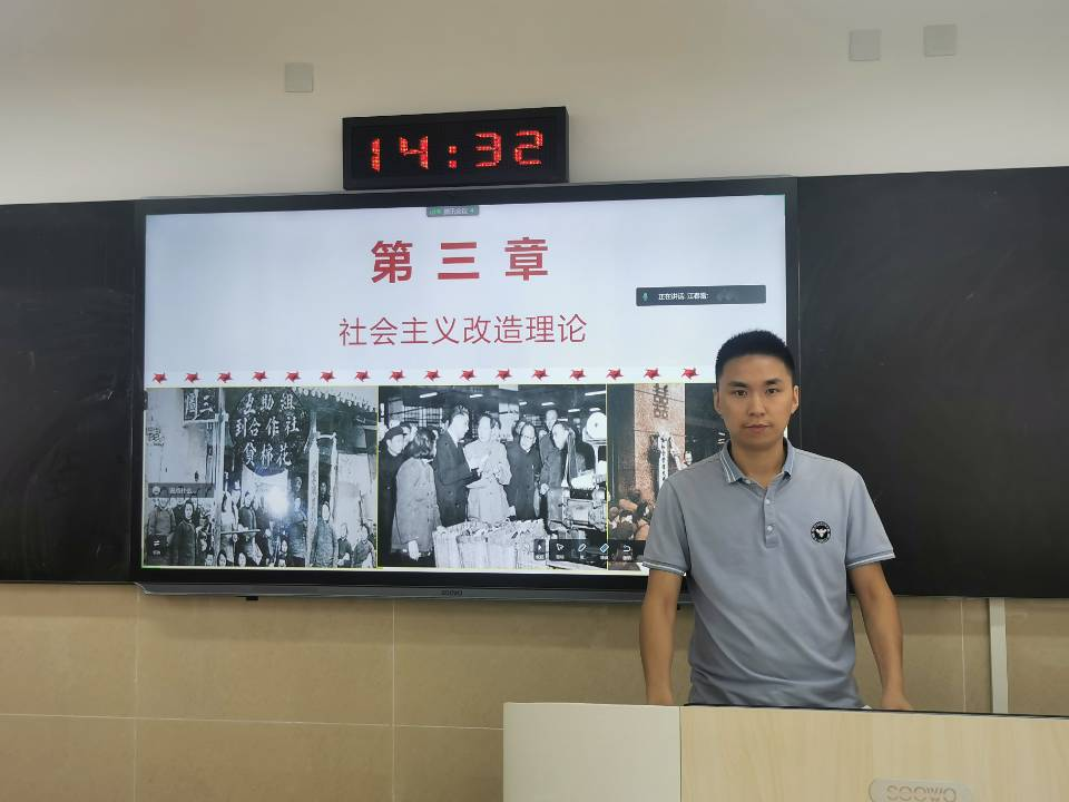 首先进行课堂展示的是江春雷老师,他从“新民主主义社会为什么是一个过渡性质的社会”、“党在过渡时期的总路线”等角度阐释从新民主主义到社会主义的转变。江老师以与学生互动的形式,运用生动幽默的授课语言,将理论知识生动形象地呈现出来,全场老师听后都表示受益匪浅。