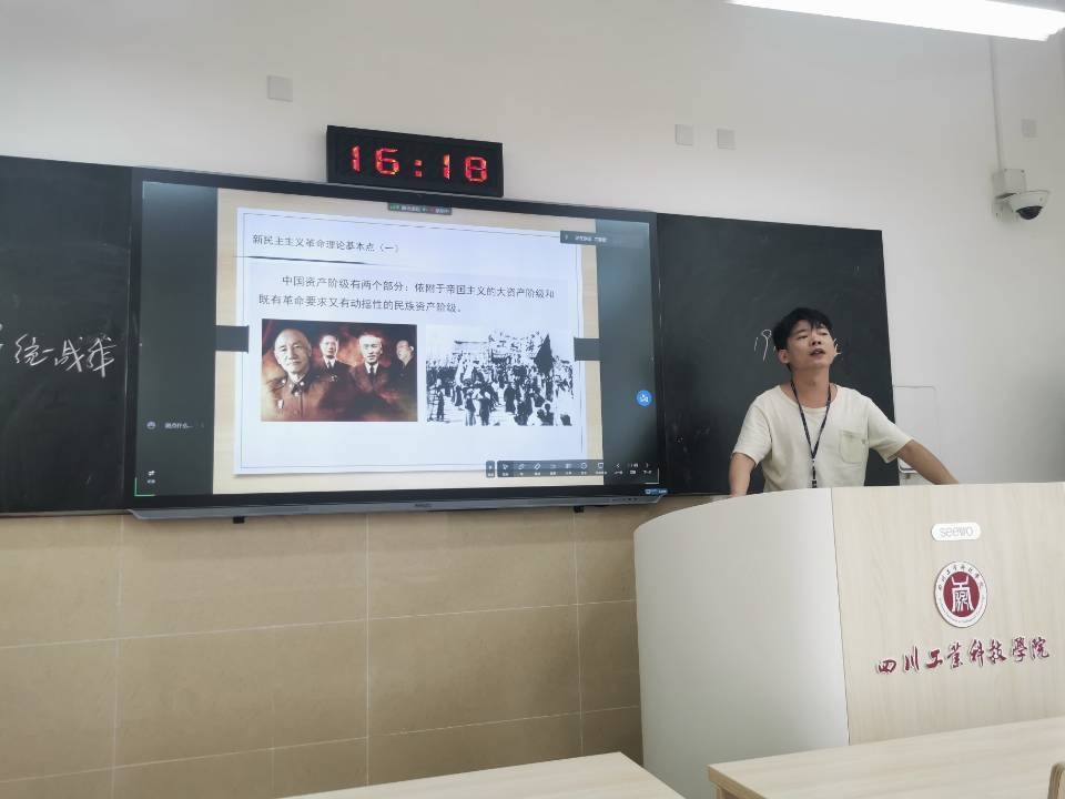 接着,贾珺行老师从新民主主义革命理论的依据和路线方面进行阐述,着重讲解了近代中国的国情以及新民主主义革命的革命对象和革命动力,并从主要矛盾和基本矛盾进行详细分析,让学生们充分理解“革命”的含义。