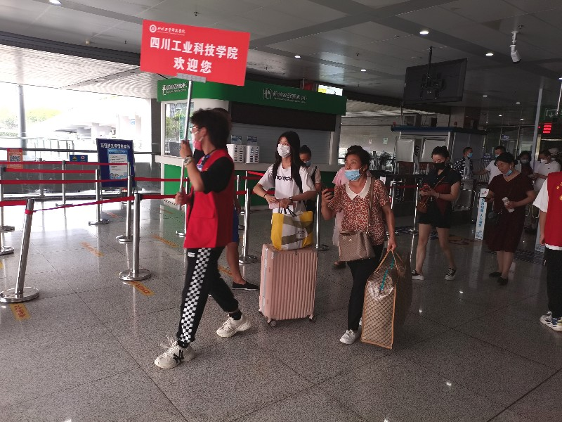 尽管按照德阳市区要求不能在火车站外围搭建迎新接站服务帐篷,但这并未消减老师和学生志愿者做好迎新接站服务工作的热情。当有列车抵达德阳火车北站时,迎新接待服务工作在学生处张彬老师的指挥下有条不紊地推进,学生志愿者高举“四川工业科技学院欢迎您”的引导牌迅速站到旅客出站口,在人群中呼喊着“四川工业科技学院”,笑容满面地带领新生和家长前往阴凉等待区,待接待人数达一定数量后,新生和家长便乘坐学校新生免费接送车抵达学校。