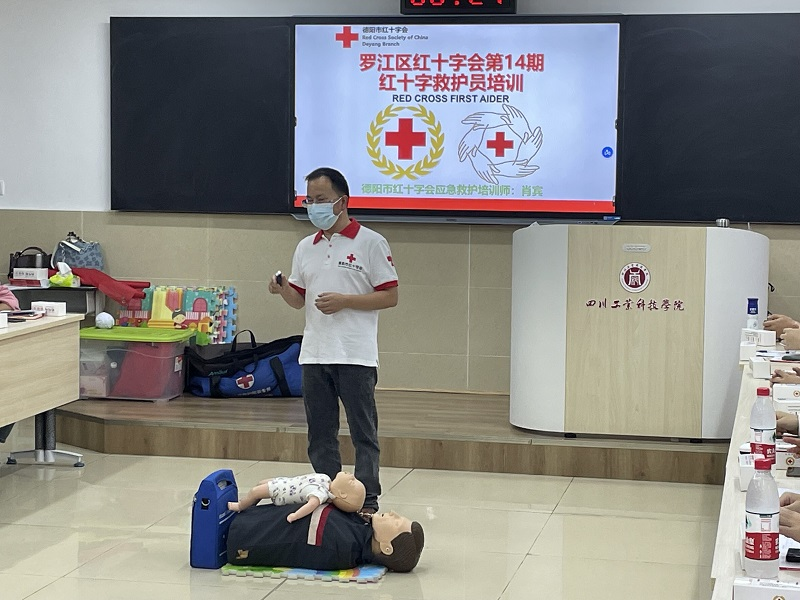 为进一步普及应急救护常识,大力弘扬“人道、博爱、奉献”的红十字精神,让师生了解急救、自救知识,提高自救、互救能力。9月17日至18日,经济管理学院在龑江学村B401开展了红十字救护员的培训活动。罗江区红十字会工作人员肖宾,经管学院党总支副书记杨永岗、22级各班班长及安全委员参加了本次培训。
