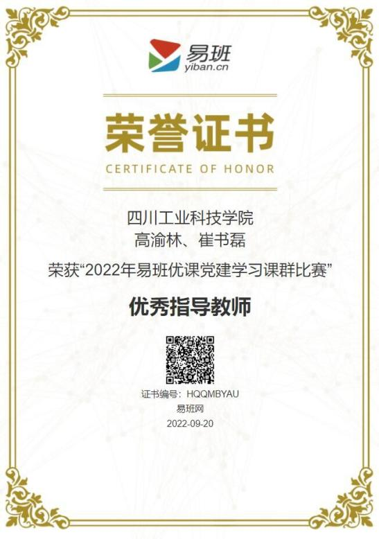 近日,学校在教育部易班网主办的“2022年易班优课党建学习课群比赛”和“2022年易班优课党支部学习课群比赛”中荣获优秀组织奖,其中廖佳英、魏欢、赵婷、高渝林、崔书磊五位老师荣获优秀指导老师称号。