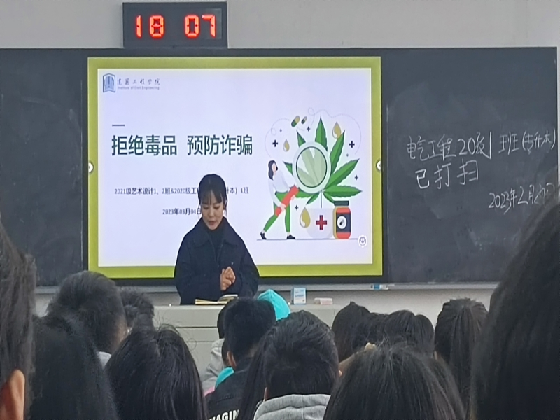 为进一步扎实做好校园安全防范工作,筑牢校园安全屏障。提高学生识毒、防毒、拒毒的意识,引导学生自觉远离毒品,树立“健康人生,绿色无毒”的正确观念,提高学生自觉防范电信网络诈骗意识,避免财产损失,学习电信网络诈骗相关法律法规,远离电信诈骗违法行为,知法守法。建筑工程学院各班级于3月5日晚对学生进行“拒绝毒品,预防诈骗”主题宣传教育。