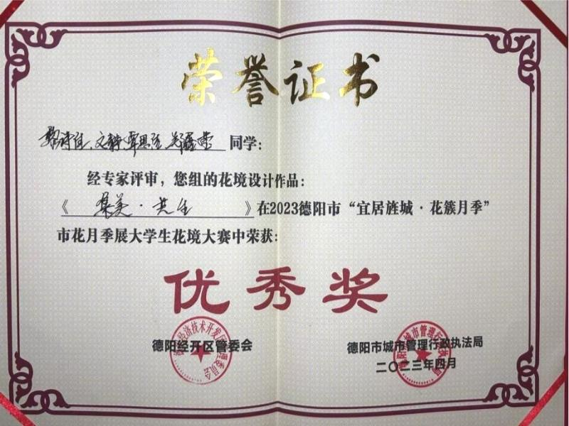 在本次大学生花境设计比赛中,学院学子与重庆交通大学、西南林业大学、河南工业大学等9所高校风景园林相关专业的300余名学生同台竞技,最终荣获铜奖1项。