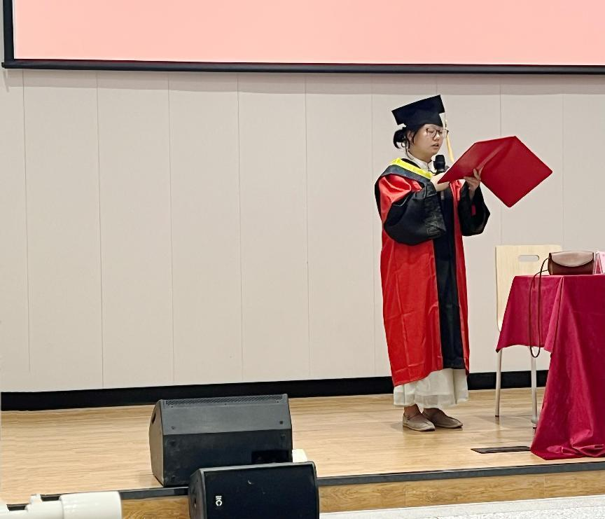 2023届毕业生代表黎李宝,代表全体2023届毕业生发表毕业感言。她回顾了四年的求学生涯,并向母校和全体教职工的辛勤培育付出致以最崇高的敬意,并郑重承诺:以青春之名,赴时代之约;勇担时代重任,绽放青春底色。
