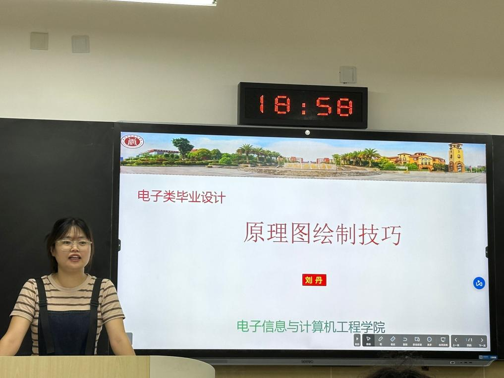 为助力学院电子类本科学生更好地开展毕业设计工作,提升学院电子类专业毕业生设计作品的效率,8月1日,学院电子类专业教师刘丹开展了关于“电子类毕业设计原理图绘制技巧”的专题讲座。