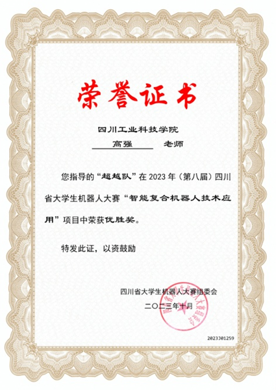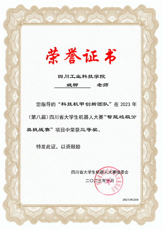 近日,由四川省教育厅主办、西南石油大学承办的2023年(第八届)四川省大学生机器人大赛落下帷幕,本次比赛学校派智能制造与车辆工程学院3支参赛队伍,由刘家麟老师指导的科技机甲创新之勇往直前队和姚柳老师指导的科技机甲创新队荣获“智能垃圾分类挑战赛”三等奖,由高强老师指导的超越队荣获“智能复合机器人技术应用比赛”优胜奖。