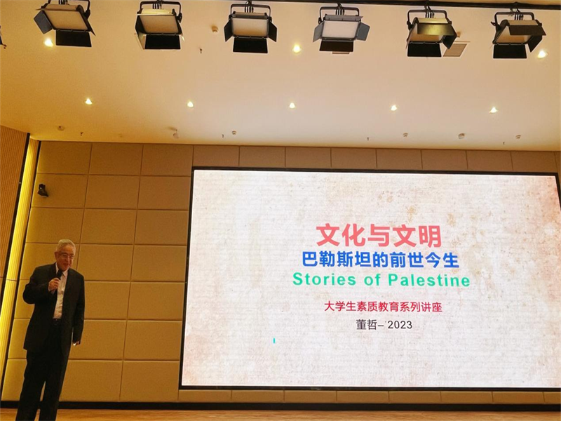 11月28日晚,学校国际交流高级战略顾问、北京大学董哲教授在龑江C区报告厅为学校师生做了题为“巴勒斯坦的前世今生”的专题讲座,讲座由肖超老师主持,学校300余名师生参加。