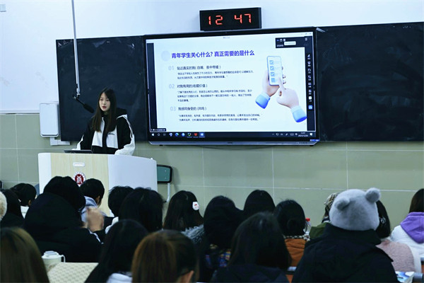 “创青春”编辑工作室成员、微博校园运营官、融媒体中心运营部负责人彭淑梅同学从平台内容建设、用户行为特征、选题和推送的时间点等方面对微信公众号和微博平台运营经验进行了分享。