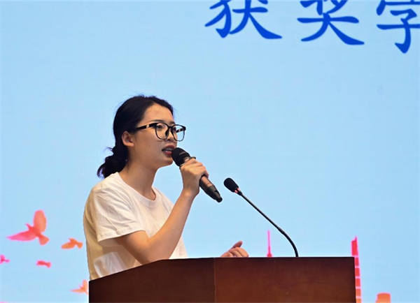 颁奖结束后,获奖学生代表肖奕秋发表了获奖感言,她呼吁全体同学,在党和国家的绿荫下追逐自我梦想的同时应当为社会、为国家尽一份绵薄之力,用实际行动践行“滴水之恩,当涌泉相报”的精神。