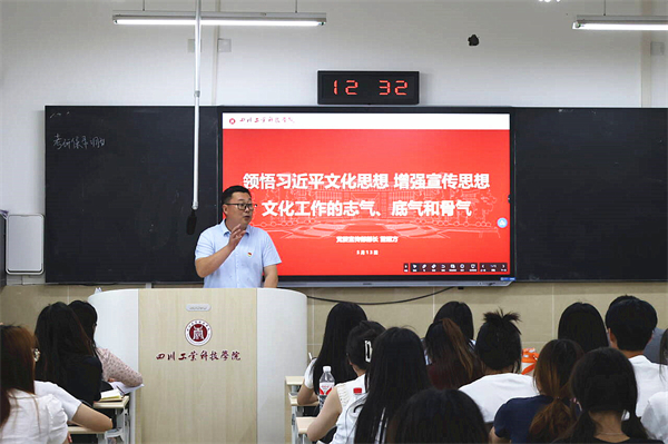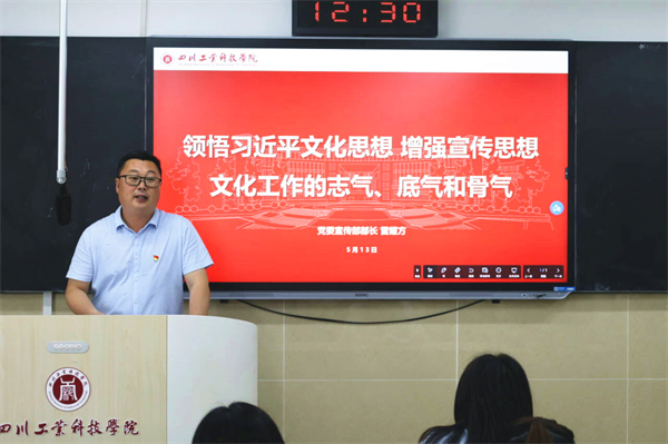 培训上,雷耀方还对学校2024年宣传思想文化工作要点作了简要说明,他提出做好宣传思想文化工作,一是要持续学习宣传贯彻习近平新时代中国特色社会主义思想和党的二十大精神;二是要压实意识形态工作责任,重视网络意识形态工作;三是要培育和践行社会主义核心价值观,加强校园文化建设;四是要建强融媒体矩阵,打造具有川工科特色的品牌文化;五是要坚持和加强党的全面领导,建设高素质干部人才队伍。