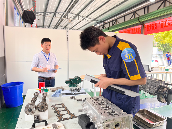 袁新担任汽车机电维修——发动机拆装检修赛项裁判
