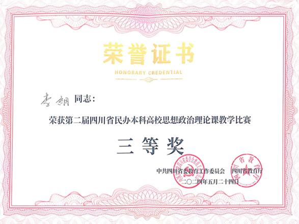 5月24日,第二届四川省民办本科高校思想政治理论课教学比赛在成都文理学院举行。学校马克思主义学院教师李纲荣获三等奖。