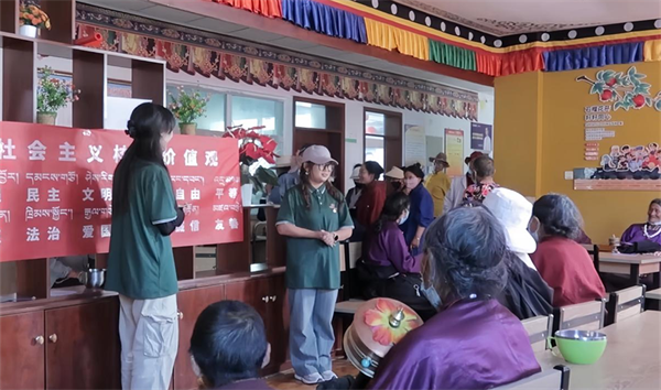 “阿乙(奶奶),您知道吗?在咱们中国,大家都说‘富强、民主、文明、和谐’是国家层面的价值目标,就像我们今天的相聚,就是和谐美好的象征呢!”一位志愿者用流畅的藏语与普通话夹杂的方式,耐心地向老阿乙解释着社会主义核心价值观的内涵,脸上洋溢着真诚与热情。这样的场景,在敬老院的每一个角落温暖上演。