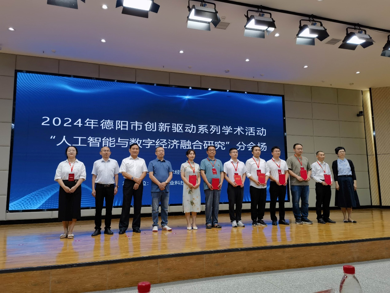 9月20日,2024年德阳市创新驱动系列学术交流活动“人工智能与数字经济融合研究”分会场在龑江校区C区报告厅举行,学院刘光乾、于涛、田小东和刘辰姣共4名教师获奖,其中刘光乾的论文《数字经济助力德阳产业转型升级研究》荣获一等奖。学院刘光乾、田小东和于涛3名教师作为获奖代表进行汇报演讲。