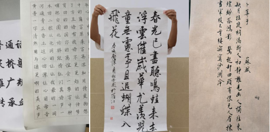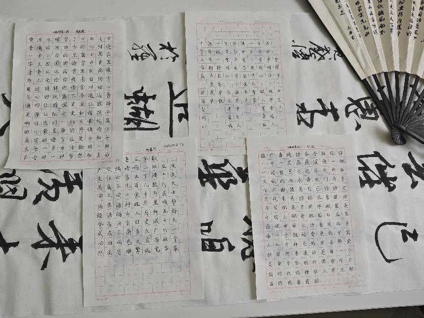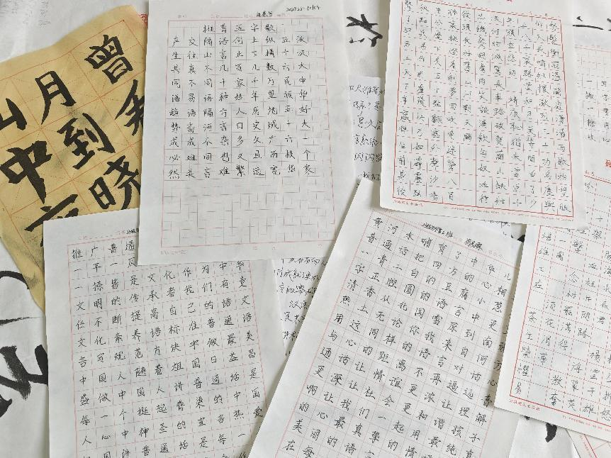 在书法比赛中,同学们以汉字为载体,展示了书法艺术之美,传承和弘扬了中华优秀传统文化。