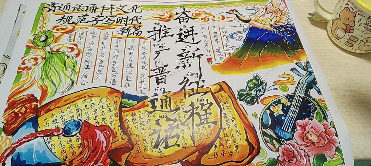 在手抄报绘制环节则鼓励同学们发挥创意,将普通话学习与美术创作相结合,创作出一幅幅既美观又富有内涵的作品。
