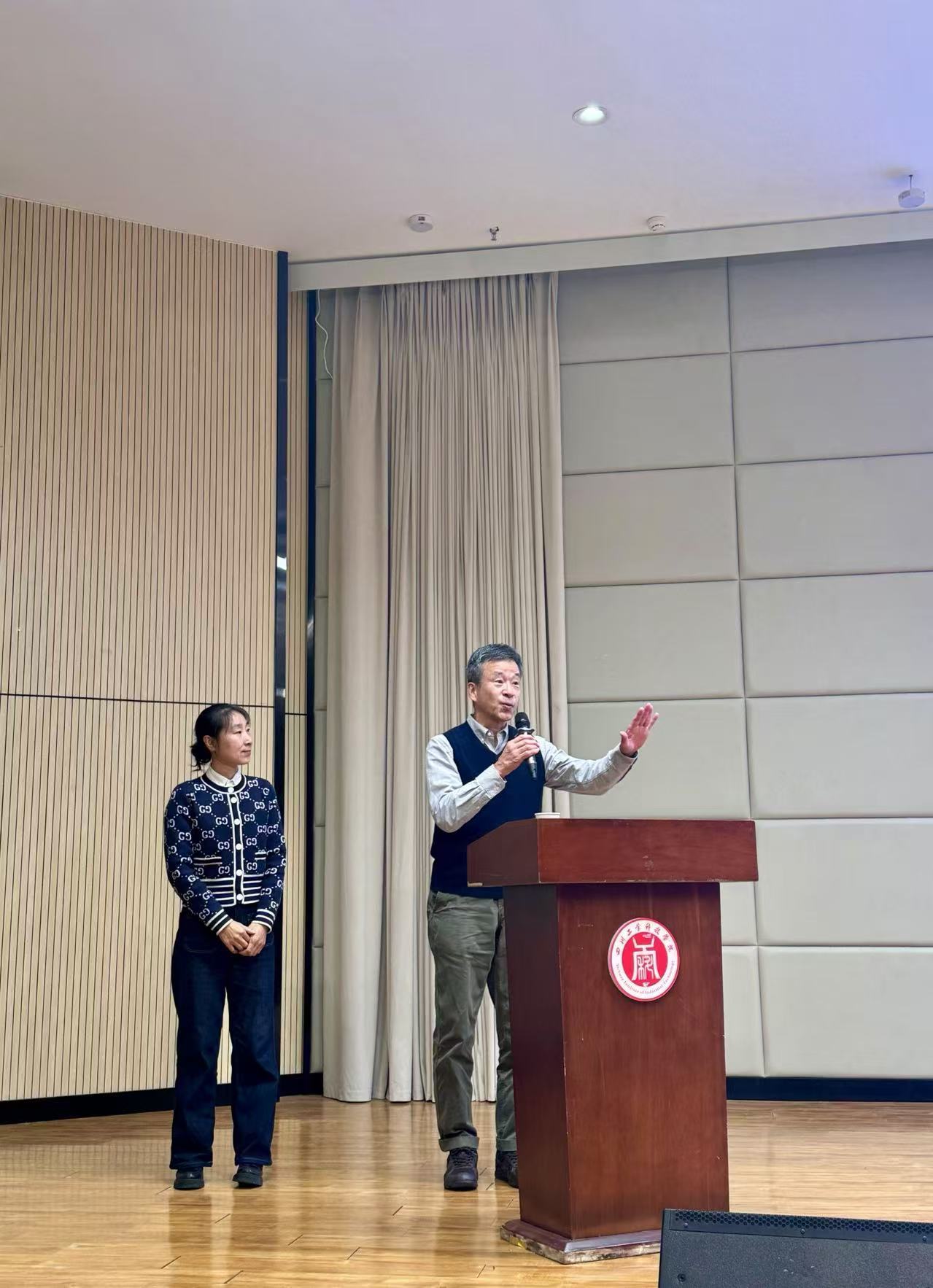 在国际文化分享环节,日本专家池田秀夫教授受邀上台发言。池田教授向同学们致以热情的问候,言语幽默风趣,同学们积极参与互动,在交流中拉近彼此的距离,对中日文化有了更为真切且深入的感知与体会。