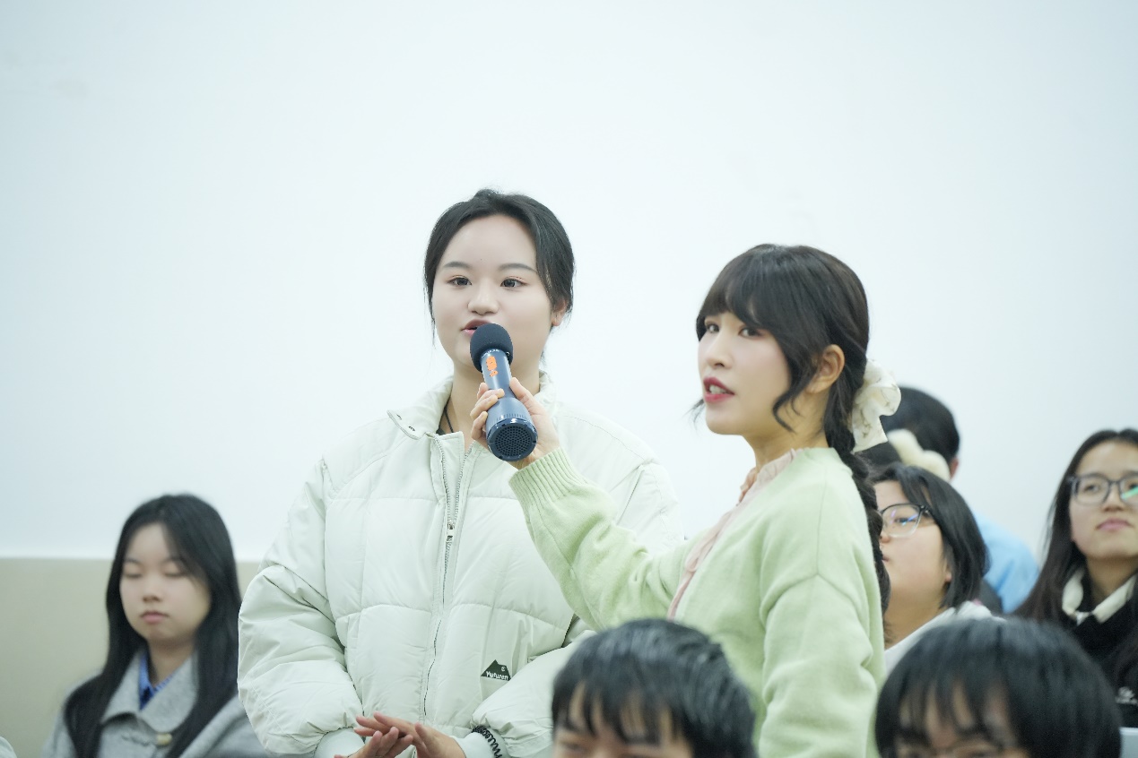 在互动环节,同学们踊跃提问,韦运玲就同学们关心的创意提升、技巧练习等方面的问题给出了具体的建议和指导。