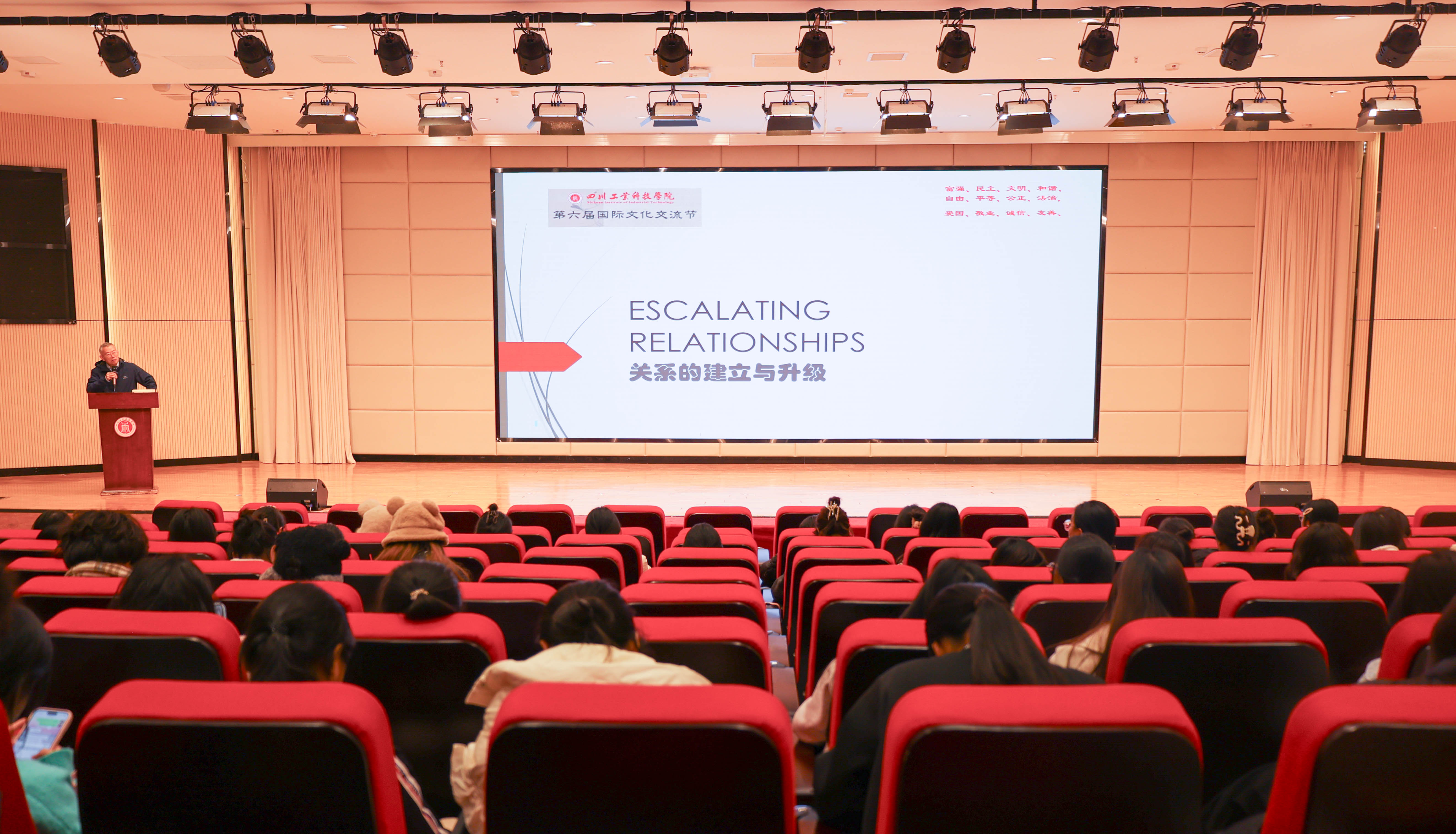 12月2日,第六届国际文化交流节“专家系列讲座”——《人际关系的维系与升级》在龑江C区报告厅精彩开讲,由国际交流与合作部部长、国际学院院长邓洪教授担任主讲嘉宾,300余名学生参与讲座。