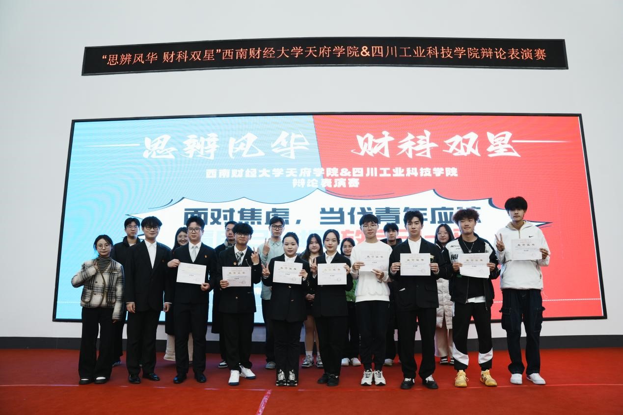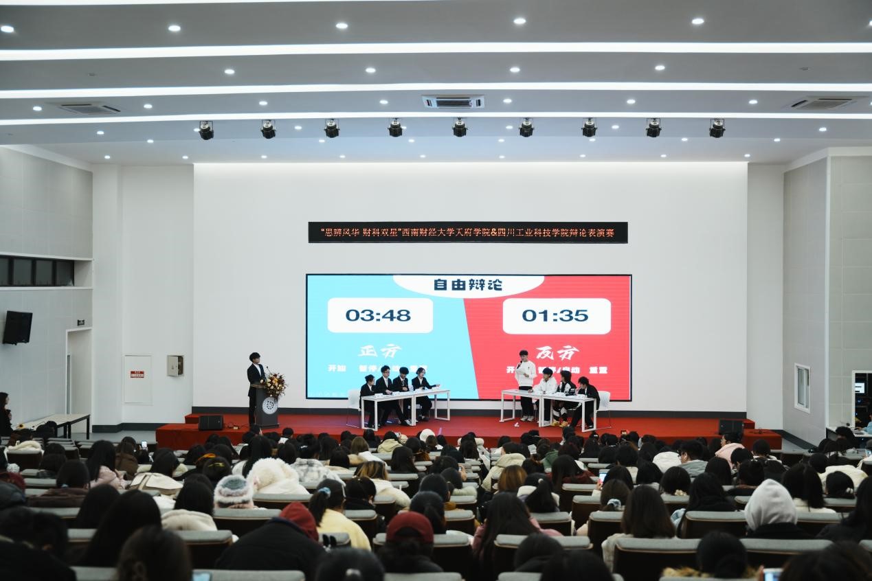 近日,四川工业科技学院与西南财经大学天府学院分别于12月11日和12月12日举办了两场辩论表演赛。此次活动由四川工业科技学院海浪口才协会和西南财经大学天府学院语言文字工作委员会承办,四川工业科技学院语委办主任、海浪口才协会指导老师刘琴老师,四川工业科技学院教育学院张亚楠老师以及西南财经大学天府学院语言文字工作负责人秦陈荣老师、教务处邓涵爻老师、冷坪蔚老师和彭锦琦老师等多位资深教育工作者担任本次比赛的评委。