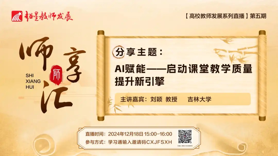 2024年12月18日,教务处教师发展中心成功组织了全校无课教师参加超星教师发展【师享汇】第五期直播活动。