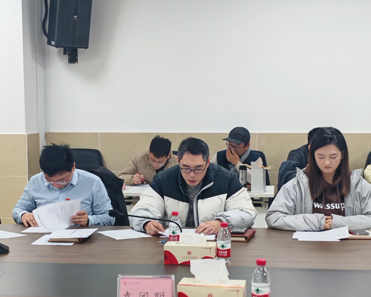 随后,学院副院长熊清明,党总支副书记何彬,党总支副书记曾晓莉,院长助理、教学办主任李长福,实训中心副主任黄译漫,学校语委办副主任刘琴,综合办副主任周洪婷依次针对2024年度个人工作完成情况、不足之处以及后期改进措施等方面进行了汇报。参会人员根据考核民主测评表从德、能、勤、绩、廉五个方面进行考核评分。