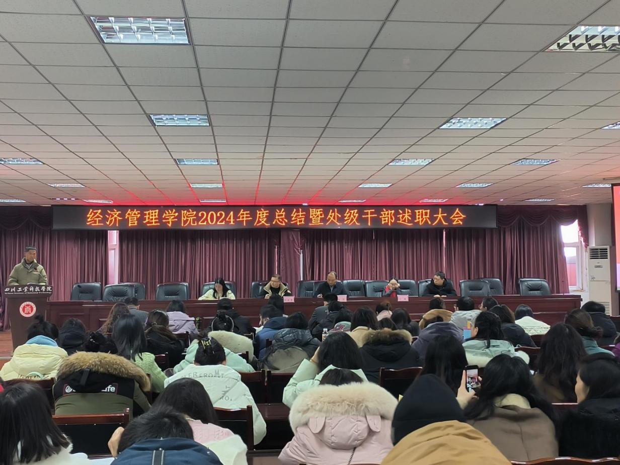 12月26日下午,经济管理学院组织召开2024年度总结暨处级干部述职大会。学校党委副书记杨朋及教务处、学生处、人事处代表作为学校考核小组出席会议,学院全体教职员工参加会议。会议由学院院长孙堃伦主持。