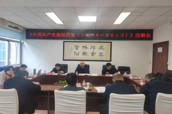 3月9日,中国共产党德阳历史第三卷送审稿改稿会在德阳党史办召开。四川省委党史办第三处处长谢海彬、德阳市委党史办党史科科长舒启东、四川工业科技学院马克思主义学院院长毛晓红、副院长蔡林及党史编纂人员参加会议,会议由德阳市委党史办二级研究员闫加美主持。