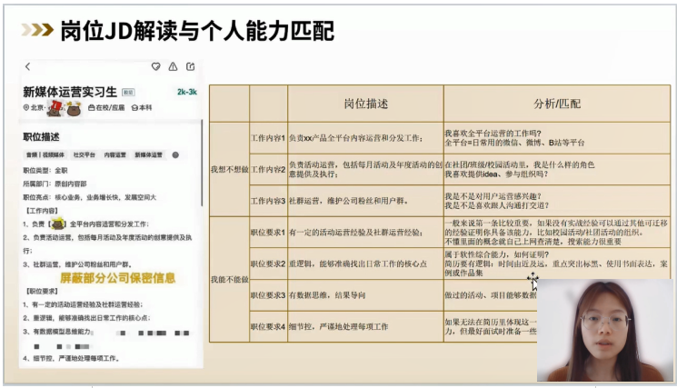 讲座从宏观就业环境切入,胡婷婷分析了当前经济转型下的行业发展趋势和就业政策,建议学生根据专业特点及时调整求职目标。通过“三维度评估法”和实际招聘案例,详细讲解了岗位需求与个人优势的匹配方法。胡婷婷特别强调,简历制作要因岗制宜,面试后要及时复盘总结经验。