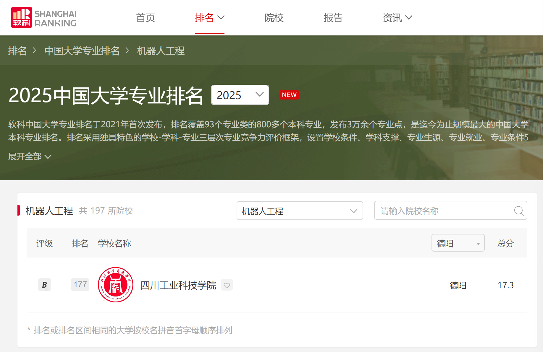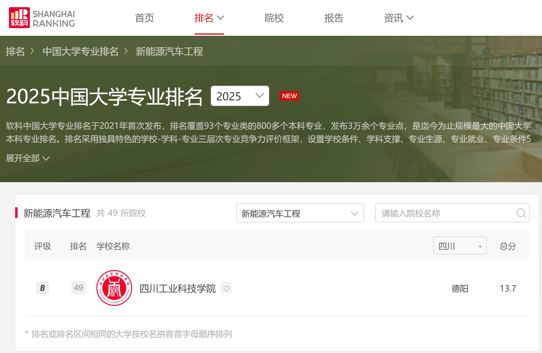 【智能制造与车辆工程学院】软科发布2025中国大学专业排名智能制造与车辆工程学院机器人工程、新能源汽车工程专业双双上榜