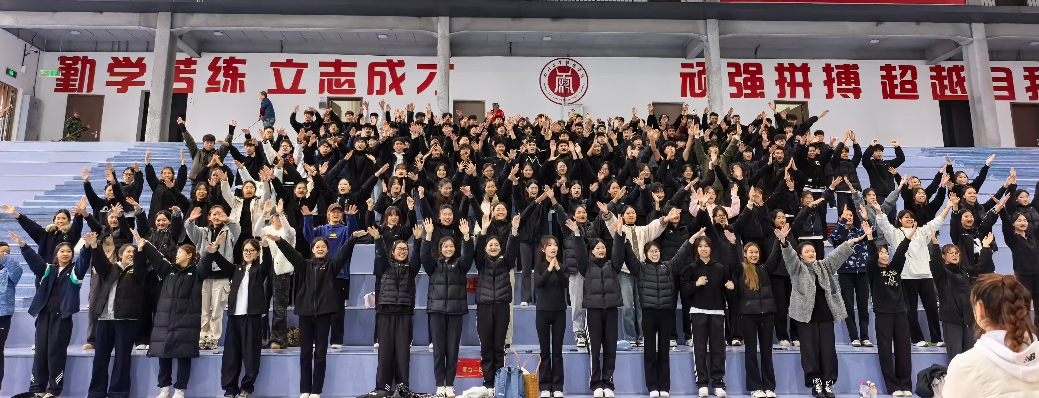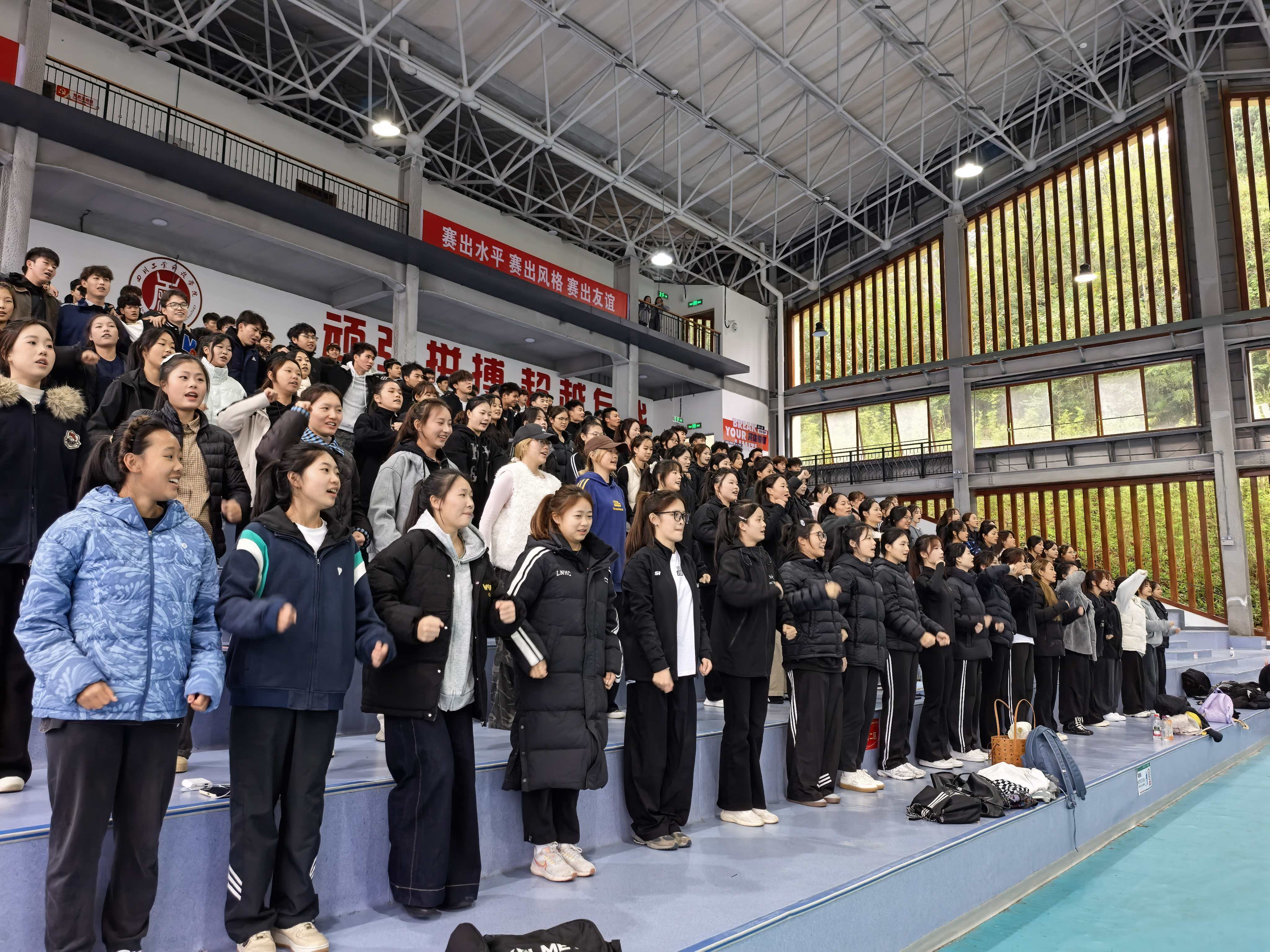 本次助威活动由体育学院统一组织,学工办主任张双全全程指导统筹。排练现场,段林美老师带领拉拉队进行动作编排,尚永恒老师指导战舞队开展节奏与队形训练,艺术团副团长张彬组织合唱方阵排练《德阳重装,独领风骚》《工科学子嗨起来》两首应援歌曲。参与学子身着统一服装,精神饱满,动作整齐,展现了川工科学子的青春活力。