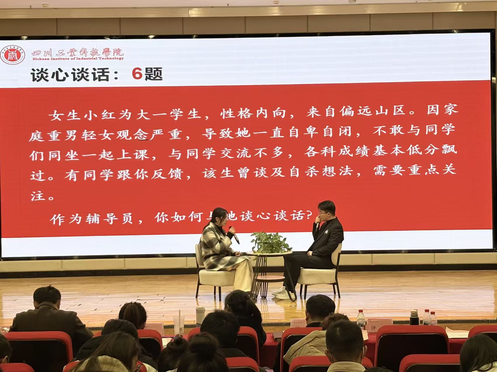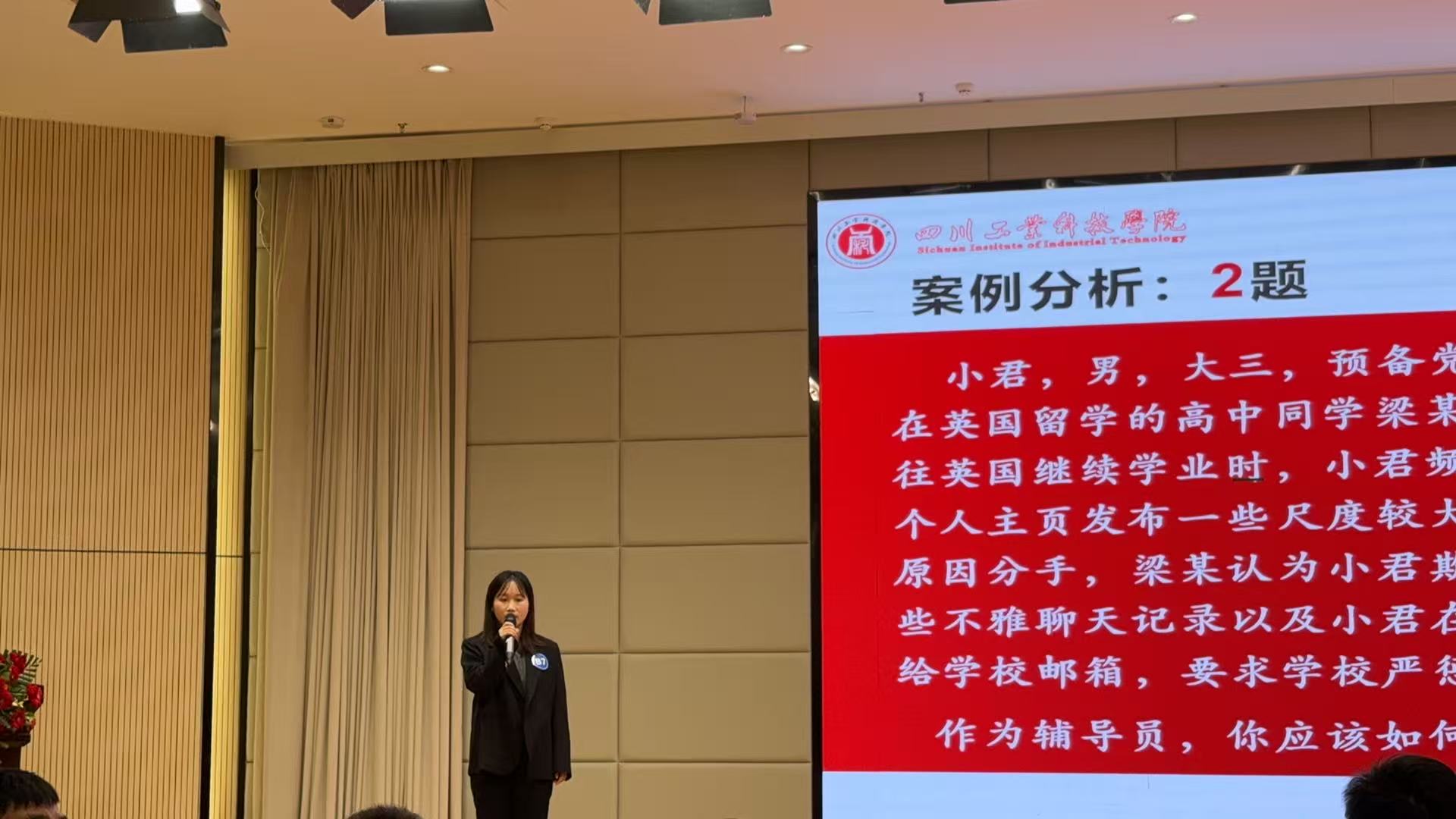 本次大赛全面考察辅导员的理论素养、专业能力及解决复杂现实问题的实践水平。在决赛中,杜婷婷老师展现出对学生成长规律的深刻把握、对思想政治教育方法的创新运用,其谈心谈话逻辑清晰、案例研讨应对沉着,充分彰显了共情能力与育人智慧,获得评委高度评价。周海峰老师则以沉稳的发挥、务实的工作思路和富有感染力的现场表达,展示了扎实的一线工作基础和良好的职业风貌。