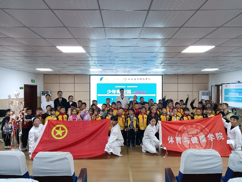11月20日,体育与健康学院护理系教师刘高带领学院同学前往罗江区天台路小学开展预防脊柱侧弯讲座。