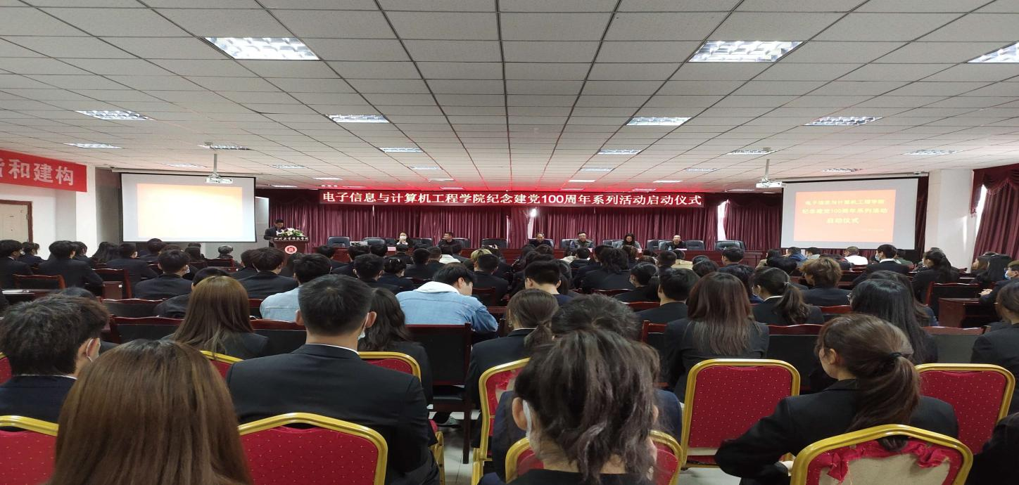 学院党总支书记龙厚彦介绍了出席本次仪式的领导和参会人员,就启动仪式召开的背景进行说明。他指出,全院要围绕纪念建党100周年开展好学院各项工作。院长吴建乐教授强调,要按照庆祝建党100周年系列活动方案开展工作,充分挖掘我院特色、继承好我院党建和团建传统,以时不我待、只争朝夕的精神,扎实开展好庆祝建党100周年系列活动,以优异的成绩献礼建党100周年。他还就学院开展建党100周年系列活动提出三点要求,要进一步凝聚思想、进一步围绕中心、进一步服务社会。学院党总支副书记马娟花宣读了《电子信息与计算机工程学院关于开展庆祝中国共产党成立100周年系列活动方案》并就活动方案落实要求进行了说明。