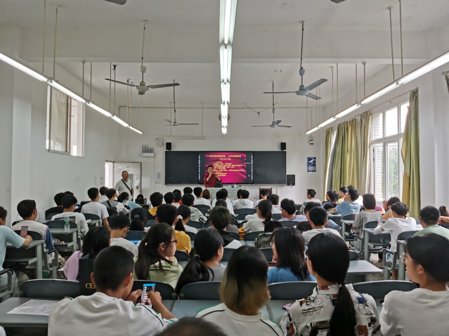 整个活动在积极热烈的氛围中进行,大学生创业就业协会、大学生发明协会的近百名积极分子参加了这次活动。