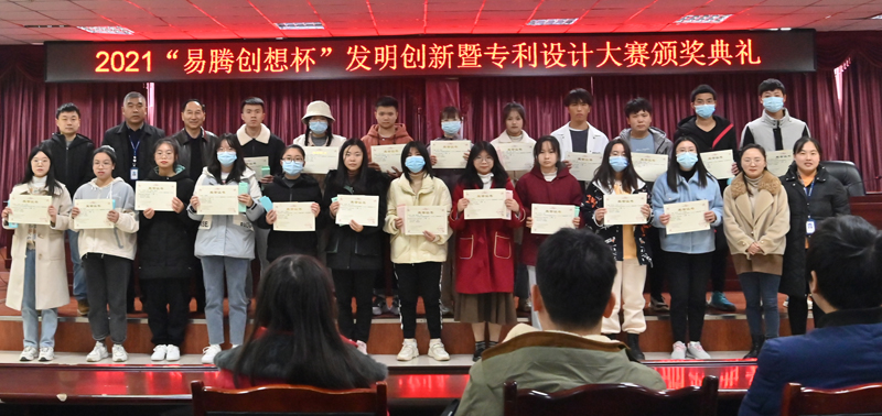 12月08日,四川工业科技学院首届“易腾创想杯”发明创新暨专利设计大赛颁奖仪式在罗江校区图书馆D-08举办。副校长郭桂萍、校长助理张清军、德阳市罗江区市场监督管理局和成都易腾创想智能科技有限公司代表、电子信息与计算机工程学院代表、科技处代表、指导教师代表、获奖学生代表共200余人参加。