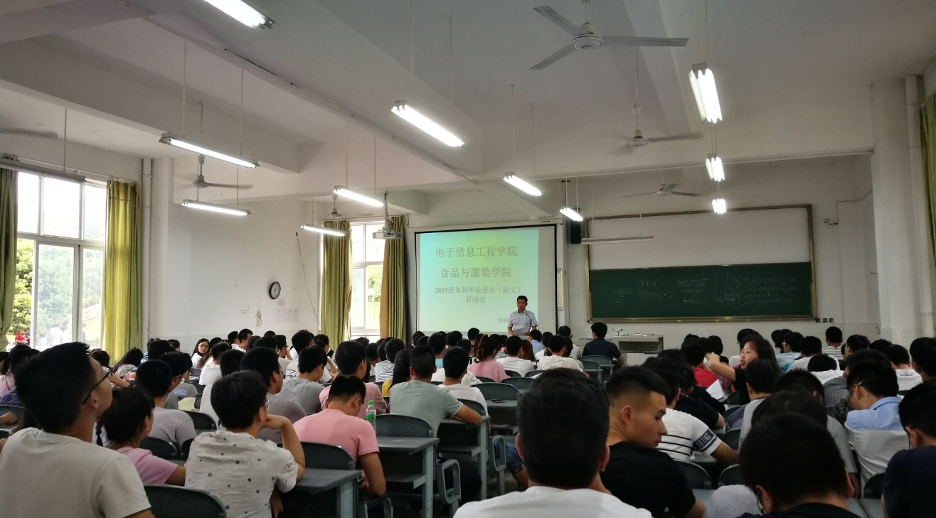 为切实提高我院毕业生设计(论文)质量,6月14日,电子信息工程学院&食品与服装学院举行2015级本科毕业设计(论文)启动会。电子信息工程学院&食品与服装学院院长龙厚彦、教学办主任刘亚君、学院2015级全体本科生参加会议,会议由龙厚彦主持。